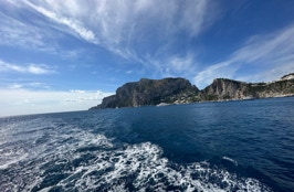 Das Boot war pünktlich abfahrbereit, und alle Passagiere fanden bequem Platz an Bord. Es gab Snacks und Getränke gegen Gebühr (man könnte auch sagen, hier wurde kräftig abkassiert). Doch die Aussichten entschädigten für alles - einmal rund um Capri und dann ein Badestopp mitten im Golf... wo erlebt man so etwas schon? Die Stimmung war gut, und wir führten nette Gespräche mit anderen Kreuzfahrtgästen aus Luxemburg, die wir kennengelernt hatten. Die Fahrt ging weiter, und es wurde ziemlich unruhig - das Ausflugsboot geriet durch den Sturm leicht in Schräglage. Der Kapitän blieb jedoch zuversichtlich, dass wir sicher nach Neapel zurückkehren würden. Die Gischt spritzte mittlerweile ziemlich hoch, und den Gästen wurde mulmig. Wir versammelten uns alle in der Mitte auf dem oberen Deck. Ich persönlich empfand die Situation als ziemlich grenzwertig, teilweise lag der Abstand zwischen dem Bootsrumpf und der Wasseroberfläche nur bei etwa 50 cm.